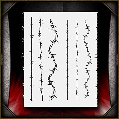 This barbed wire stencil has 6 different styles of barbed wire on it, including details on the edges to aid with highlighting and masking. Whatever type of barbed wire you need for your project, this stencil has you covered. Caution is needed to avoid harming yourself or others on these sharp edges.* (*This sentence is not actually true) Perfect for all airbrush experience levels. These will be a valuable aid for beginners to gain useful experience and will help professionals save valuable time. Our stencils are perfect for advanced professionals and beginners, ideal for every use and in high demand among airbrush and tattoo artists, US car and motorcycle customizers, and even leading clothing brands. Everyone can benefit from each of our products and future hot designs in development can significantly shorten the process of becoming an airbrush expert. We provide stencils in top laser quality, with the hottest trending lettering and graphic designs, as well as in the textile and advertising industries. All professional designs are reusable precision laser cut and made out of solvent proof thick mylar material. The clean laser cut edges of this design allow you to create quick, consistent and repeatable highly detailed professional artwork. Unlike our competitors with inferior clip-art and traditional designs, we create only high quality and unique designs that will outlast the others. Suitable for motorcycles, cars, tattoos, cake decorating, t-shirts, arts, and all kinds of DIY projects. From our Patterns / Textures line of stencils.