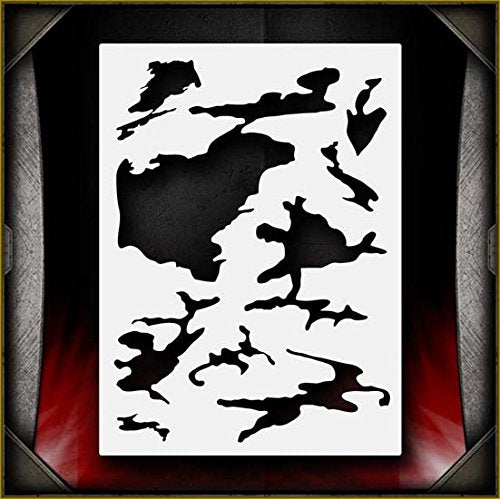 This camo stencil contains many different camouflage textures that are perfect for creating realistic camo in any project. Perfect for all airbrush experience levels. These will be a valuable aid for beginners to gain useful experience and will help professionals save valuable time. Our stencils are perfect for advanced professionals and beginners, ideal for every use and in high demand among airbrush and tattoo artists, US car and motorcycle customizers, and even leading clothing brands. Everyone can benefit from each of our products and future hot designs in development can significantly shorten the process of becoming an airbrush expert. We provide stencils in top laser quality, with the hottest trending lettering and graphic designs, as well as in the textile and advertising industries. All professional designs are reusable precision laser cut and made out of solvent proof thick mylar material. The clean laser cut edges of this design allow you to create quick, consistent and repeatable highly detailed professional artwork. Unlike our competitors with inferior clip-art and traditional designs, we create only high quality and unique designs that will outlast the others. Suitable for motorcycles, cars, tattoos, cake decorating, t-shirts, arts, and all kinds of DIY projects. From our Patterns / Textures line of stencils.