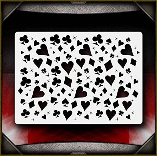 This versatile stencil contains dozens of hearts, diamonds, clubs and spades of varying sizes. This makes it easy for you to add card suite designs to any project, whether large or small. Perfect for all airbrush experience levels. These will be a valuable aid for beginners to gain useful experience and will help professionals save valuable time. Our stencils are perfect for advanced professionals and beginners, ideal for every use and in high demand among airbrush and tattoo artists, US car and motorcycle customizers, and even leading clothing brands. Everyone can benefit from each of our products and future hot designs in development can significantly shorten the process of becoming an airbrush expert. We provide stencils in top laser quality, with the hottest trending lettering and graphic designs, as well as in the textile and advertising industries. All professional designs are reusable precision laser cut and made out of solvent proof thick mylar material. The clean laser cut edges of this design allow you to create quick, consistent and repeatable highly detailed professional artwork. Unlike our competitors with inferior clip-art and traditional designs, we create only high quality and unique designs that will outlast the others. Suitable for motorcycles, cars, tattoos, cake decorating, t-shirts, arts, and all kinds of DIY projects. From our Patterns / Textures line of stencils.