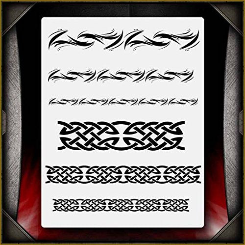 This highly detailed stencil contains 2 different Celtic tribal designs, with 3 sizes of each design. Great for backgrounds, borders, or anything else you can think of. Perfect for all airbrush experience levels. These will be a valuable aid for beginners to gain useful experience and will help professionals save valuable time. Our stencils are perfect for advanced professionals and beginners, ideal for every use and in high demand among airbrush and tattoo artists, US car and motorcycle customizers, and even leading clothing brands. Everyone can benefit from each of our products and future hot designs in development can significantly shorten the process of becoming an airbrush expert. We provide stencils in top laser quality, with the hottest trending lettering and graphic designs, as well as in the textile and advertising industries. All professional designs are reusable precision laser cut and made out of solvent proof thick mylar material. The clean laser cut edges of this design allow you to create quick, consistent and repeatable highly detailed professional artwork. Unlike our competitors with inferior clip-art and traditional designs, we create only high quality and unique designs that will outlast the others. Suitable for motorcycles, cars, tattoos, cake decorating, t-shirts, arts, and all kinds of DIY projects. From our World Cultures line of stencils.