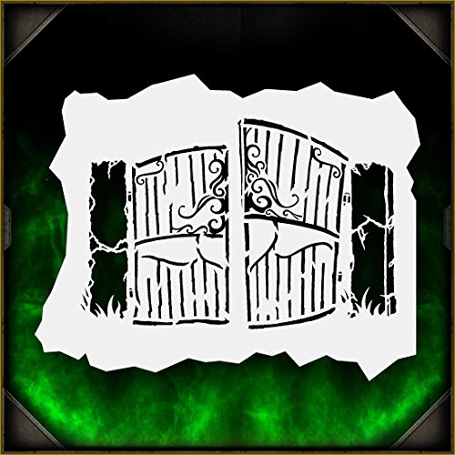 This stencil depicts a broken down old cemetery gate standing slightly open. The stone columns that support it are cracked and worn with age, and some grass at their base adds to the detail. Perfect for all airbrush experience levels. These will be a valuable aid for beginners to gain useful experience and will help professionals save valuable time. Our stencils are perfect for advanced professionals and beginners, ideal for every use and in high demand among airbrush and tattoo artists, US car and motorcycle customizers, and even leading clothing brands. Everyone can benefit from each of our products and future hot designs in development can significantly shorten the process of becoming an airbrush expert. We provide stencils in top laser quality, with the hottest trending lettering and graphic designs, as well as in the textile and advertising industries. All professional designs are reusable precision laser cut and made out of solvent proof thick mylar material. The clean laser cut edges of this design allow you to create quick, consistent and repeatable highly detailed professional artwork. Unlike our competitors with inferior clip-art and traditional designs, we create only high quality and unique designs that will outlast the others. Suitable for motorcycles, cars, tattoos, cake decorating, t-shirts, arts, and all kinds of DIY projects. From our Zombies line of stencils.