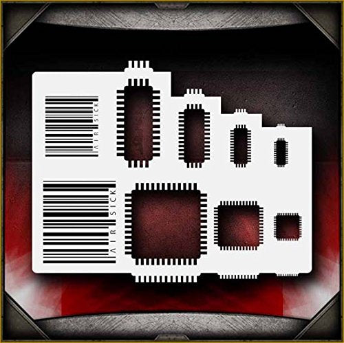 This detailed stencil has 2 different styles of computer chips, with several sizes of each. Also contains 2 different sized bar codes, and a detailed edge that aids with masking and drop shadows. Perfect for all airbrush experience levels. These will be a valuable aid for beginners to gain useful experience and will help professionals save valuable time. Our stencils are perfect for advanced professionals and beginners, ideal for every use and in high demand among airbrush and tattoo artists, US car and motorcycle customizers, and even leading clothing brands. Everyone can benefit from each of our products and future hot designs in development can significantly shorten the process of becoming an airbrush expert. We provide stencils in top laser quality, with the hottest trending lettering and graphic designs, as well as in the textile and advertising industries. All professional designs are reusable precision laser cut and made out of solvent proof thick mylar material. The clean laser cut edges of this design allow you to create quick, consistent and repeatable highly detailed professional artwork. Unlike our competitors with inferior clip-art and traditional designs, we create only high quality and unique designs that will outlast the others. Suitable for motorcycles, cars, tattoos, cake decorating, t-shirts, arts, and all kinds of DIY projects. From our Patterns / Textures line of stencils.