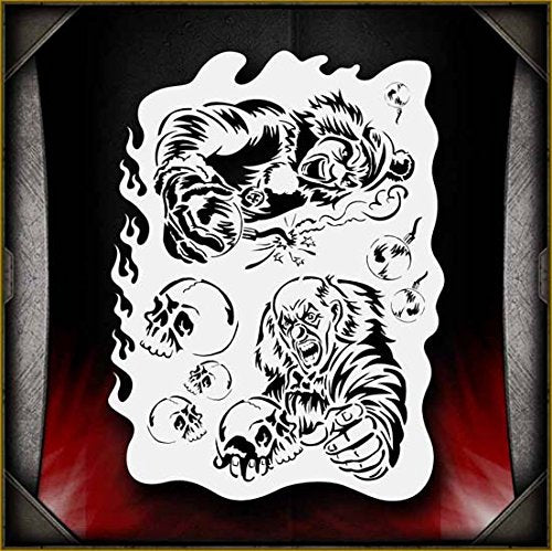 Everyone's scared of clowns right? No? Well, they will be after seeing your work using this terrifying clown-themed stencil. This highly detailed stencil contains 2 different clowns, 1 holding a bomb and the other holding a skull. The stencil also contains skulls and bombs in various sizes. The edges are detailed as well, and can be used to create flames, smoke, and also to aid with shading. Perfect for all airbrush experience levels. These will be a valuable aid for beginners to gain useful experience and will help professionals save valuable time. Our stencils are perfect for advanced professionals and beginners, ideal for every use and in high demand among airbrush and tattoo artists, US car and motorcycle customizers, and even leading clothing brands. Everyone can benefit from each of our products and future hot designs in development can significantly shorten the process of becoming an airbrush expert. We provide stencils in top laser quality, with the hottest trending lettering and graphic designs, as well as in the textile and advertising industries. All professional designs are reusable precision laser cut and made out of solvent proof thick mylar material. The clean laser cut edges of this design allow you to create quick, consistent and repeatable highly detailed professional artwork. Unlike our competitors with inferior clip-art and traditional designs, we create only high quality and unique designs that will outlast the others. Suitable for motorcycles, cars, tattoos, cake decorating, t-shirts, arts, and all kinds of DIY projects. From our Clowns line of stencils.