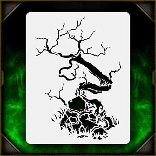 This highly detailed tree stencil contains a dead or dying tree, a perfect addition to any graveyard scene. Will also add a creepy feel to any project you're working on. Perfect for all airbrush experience levels. These will be a valuable aid for beginners to gain useful experience and will help professionals save valuable time. Our stencils are perfect for advanced professionals and beginners, ideal for every use and in high demand among airbrush and tattoo artists, US car and motorcycle customizers, and even leading clothing brands. Everyone can benefit from each of our products and future hot designs in development can significantly shorten the process of becoming an airbrush expert. We provide stencils in top laser quality, with the hottest trending lettering and graphic designs, as well as in the textile and advertising industries. All professional designs are reusable precision laser cut and made out of solvent proof thick mylar material. The clean laser cut edges of this design allow you to create quick, consistent and repeatable highly detailed professional artwork. Unlike our competitors with inferior clip-art and traditional designs, we create only high quality and unique designs that will outlast the others. Suitable for motorcycles, cars, tattoos, cake decorating, t-shirts, arts, and all kinds of DIY projects. From our Zombies line of stencils.
