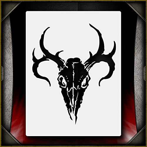 This highly detailed deer skull stencil depicts a deer skull as viewed from the front. Cracks in the bone and striations in the horn enhance the realism of the design. Perfect for all airbrush experience levels. These will be a valuable aid for beginners to gain useful experience and will help professionals save valuable time. Our stencils are perfect for advanced professionals and beginners, ideal for every use and in high demand among airbrush and tattoo artists, US car and motorcycle customizers, and even leading clothing brands. Everyone can benefit from each of our products and future hot designs in development can significantly shorten the process of becoming an airbrush expert. We provide stencils in top laser quality, with the hottest trending lettering and graphic designs, as well as in the textile and advertising industries. All professional designs are reusable precision laser cut and made out of solvent proof thick mylar material. The clean laser cut edges of this design allow you to create quick, consistent and repeatable highly detailed professional artwork. Unlike our competitors with inferior clip-art and traditional designs, we create only high quality and unique designs that will outlast the others. Suitable for motorcycles, cars, tattoos, cake decorating, t-shirts, arts, and all kinds of DIY projects. From our Nature line of stencils.