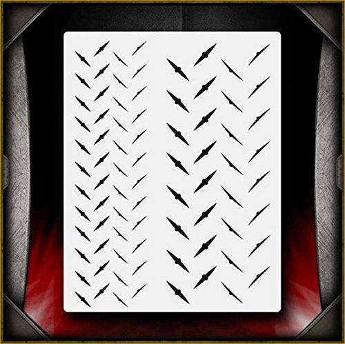 This detailed stencil contains 2 different styles of diamond plate, with a large and small version of each style. Perfect for getting a realistic looking diamond plate pattern into any project. Perfect for all airbrush experience levels. These will be a valuable aid for beginners to gain useful experience and will help professionals save valuable time. Our stencils are perfect for advanced professionals and beginners, ideal for every use and in high demand among airbrush and tattoo artists, US car and motorcycle customizers, and even leading clothing brands. Everyone can benefit from each of our products and future hot designs in development can significantly shorten the process of becoming an airbrush expert. We provide stencils in top laser quality, with the hottest trending lettering and graphic designs, as well as in the textile and advertising industries. All professional designs are reusable precision laser cut and made out of solvent proof thick mylar material. The clean laser cut edges of this design allow you to create quick, consistent and repeatable highly detailed professional artwork. Unlike our competitors with inferior clip-art and traditional designs, we create only high quality and unique designs that will outlast the others. Suitable for motorcycles, cars, tattoos, cake decorating, t-shirts, arts, and all kinds of DIY projects. From our Patterns / Textures line of stencils. Painted Size: The larger diamonds are 1" from tip to tip, the smaller diamonds are .5" from tip to tip.