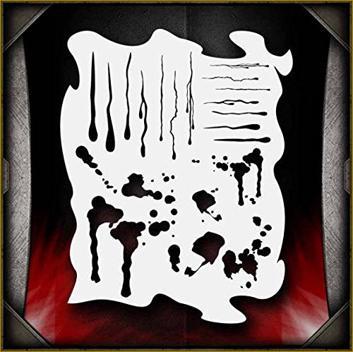 This highly detailed stencil contains all the gruesome details needed to make your artwork have a realistic looking blood effect. Or any type of liquid you should choose to have oozing and splattered across your artwork. Contains spatter and drip designs in many different variations and sizes. The edges of the stencil are curved to aid with shading. Our stencils are perfect for advanced professionals and beginners, ideal for every use and in high demand among airbrush and tattoo artists, US car and motorcycle customizers, and even leading clothing brands. Everyone can benefit from each of our products and future hot designs in development can significantly shorten the process of becoming an airbrush expert. We provide stencils in top laser quality, with the hottest trending lettering and graphic designs, as well as in the textile and advertising industries. All professional designs are reusable precision laser cut and made out of solvent proof thick mylar material. The clean laser cut edges of this design allow you to create quick, consistent and repeatable highly detailed professional artwork. Unlike our competitors with inferior clip-art and traditional designs, we create only high quality and unique designs that will outlast the others. This highly detailed stencil contains all the gruesome details needed to make your artwork have a realistic looking blood effect. Or any type of liquid you should choose to have oozing and splattered across your artwork. Contains spatter and drip designs in many different variations and sizes. The edges of the stencil are curved to aid with shading.