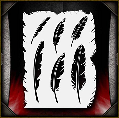 This exquisitely detailed stencil contains 6 different feathers in various sizes. Whether you need a feather floating down from above or a quill pen in the hand of your grim reaper, this stencil has the design that's perfect for you. The stencil also has feathery detailed edges to aid with masking, drop shadows or shading. Our stencils are perfect for advanced professionals and beginners, ideal for every use and in high demand among airbrush and tattoo artists, US car and motorcycle customizers, and even leading clothing brands. Everyone can benefit from each of our products and future hot designs in development can significantly shorten the process of becoming an airbrush expert. We provide stencils in top laser quality, with the hottest trending lettering and graphic designs, as well as in the textile and advertising industries. All professional designs are reusable precision laser cut and made out of solvent proof thick mylar material. The clean laser cut edges of this design allow you to create quick, consistent and repeatable highly detailed professional artwork. Unlike our competitors with inferior clip-art and traditional designs, we create only high quality and unique designs that will outlast the others. This exquisitely detailed stencil contains 6 different feathers in various sizes. Whether you need a feather floating down from above or a quill pen in the hand of your grim reaper, this stencil has the design that's perfect for you. The stencil also has feathery detailed edges to aid with masking, drop shadows or shading.