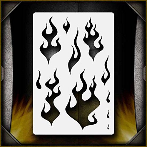 This detailed stencil contains our flame design in several different sizes, making it easy for you to add sick looking flames to your next project. Perfect for all airbrush experience levels. These will be a valuable aid for beginners to gain useful experience and will help professionals save valuable time. Our stencils are perfect for advanced professionals and beginners, ideal for every use and in high demand among airbrush and tattoo artists, US car and motorcycle customizers, and even leading clothing brands. Everyone can benefit from each of our products and future hot designs in development can significantly shorten the process of becoming an airbrush expert. We provide stencils in top laser quality, with the hottest trending lettering and graphic designs, as well as in the textile and advertising industries. All professional designs are reusable precision laser cut and made out of solvent proof thick mylar material. The clean laser cut edges of this design allow you to create quick, consistent and repeatable highly detailed professional artwork. Unlike our competitors with inferior clip-art and traditional designs, we create only high quality and unique designs that will outlast the others. Suitable for motorcycles, cars, tattoos, cake decorating, t-shirts, arts, and all kinds of DIY projects. From our Flames line of stencils.
