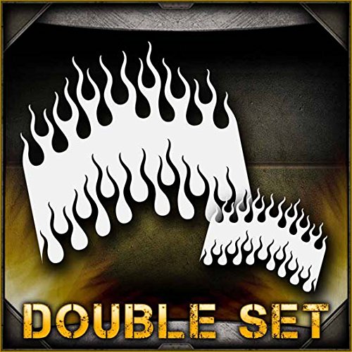 This detailed 2 stencil set contains a large and small version of our flame design, allowing you to add sick flames to your next project. Perfect for all airbrush experience levels. These will be a valuable aid for beginners to gain useful experience and will help professionals save valuable time. Our stencils are perfect for advanced professionals and beginners, ideal for every use and in high demand among airbrush and tattoo artists, US car and motorcycle customizers, and even leading clothing brands. Everyone can benefit from each of our products and future hot designs in development can significantly shorten the process of becoming an airbrush expert. We provide stencils in top laser quality, with the hottest trending lettering and graphic designs, as well as in the textile and advertising industries. All professional designs are reusable precision laser cut and made out of solvent proof thick mylar material. The clean laser cut edges of this design allow you to create quick, consistent and repeatable highly detailed professional artwork. Unlike our competitors with inferior clip-art and traditional designs, we create only high quality and unique designs that will outlast the others. Suitable for motorcycles, cars, tattoos, cake decorating, t-shirts, arts, and all kinds of DIY projects. From our Flames line of stencils.