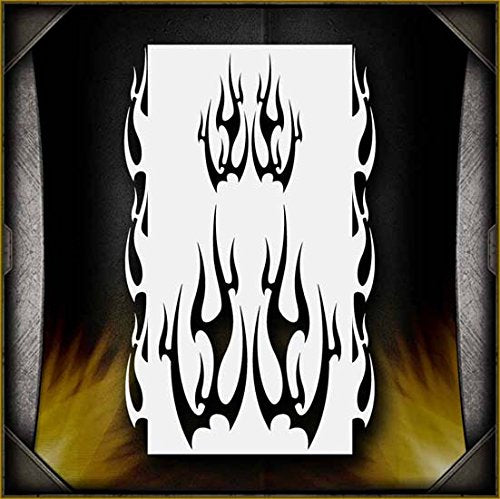 This highly detailed stencil depicts our flame design, and has detailed edges as well to aid with masking, drop shadows and shading. Perfect for all airbrush experience levels. These will be a valuable aid for beginners to gain useful experience and will help professionals save valuable time. Our stencils are perfect for advanced professionals and beginners, ideal for every use and in high demand among airbrush and tattoo artists, US car and motorcycle customizers, and even leading clothing brands. Everyone can benefit from each of our products and future hot designs in development can significantly shorten the process of becoming an airbrush expert. We provide stencils in top laser quality, with the hottest trending lettering and graphic designs, as well as in the textile and advertising industries. All professional designs are reusable precision laser cut and made out of solvent proof thick mylar material. The clean laser cut edges of this design allow you to create quick, consistent and repeatable highly detailed professional artwork. Unlike our competitors with inferior clip-art and traditional designs, we create only high quality and unique designs that will outlast the others. Suitable for motorcycles, cars, tattoos, cake decorating, t-shirts, arts, and all kinds of DIY projects. From our Flames line of stencils.