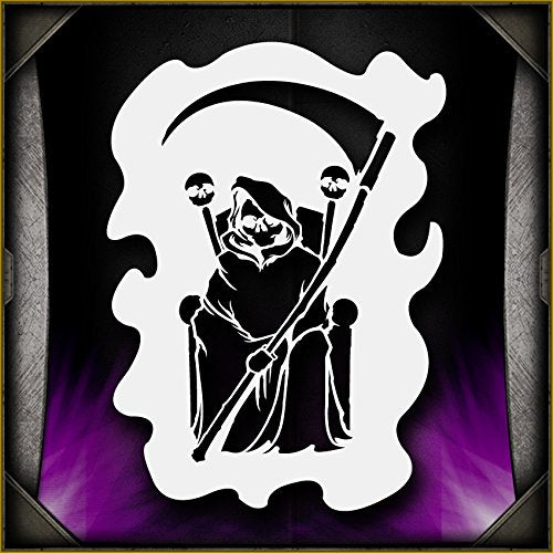 This detailed stencil depicts the grim reaper, death himself, in a menacing pose. A perfect addition to any project to give it a dark, creepy feel. Perfect for all airbrush experience levels. These will be a valuable aid for beginners to gain useful experience and will help professionals save valuable time. Our stencils are perfect for advanced professionals and beginners, ideal for every use and in high demand among airbrush and tattoo artists, US car and motorcycle customizers, and even leading clothing brands. Everyone can benefit from each of our products and future hot designs in development can significantly shorten the process of becoming an airbrush expert. We provide stencils in top laser quality, with the hottest trending lettering and graphic designs, as well as in the textile and advertising industries. All professional designs are reusable precision laser cut and made out of solvent proof thick mylar material. The clean laser cut edges of this design allow you to create quick, consistent and repeatable highly detailed professional artwork. Unlike our competitors with inferior clip-art and traditional designs, we create only high quality and unique designs that will outlast the others. Suitable for motorcycles, cars, tattoos, cake decorating, t-shirts, arts, and all kinds of DIY projects. From our Grim Reapers line of stencils.