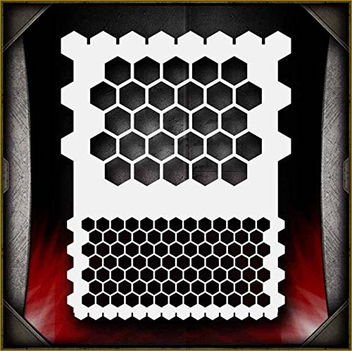 This highly detailed stencil has our honeycomb design in 2 different sizes. The edges of the stencil are also detailed to aid with masking, drop shadows and shading. Perfect for all airbrush experience levels. These will be a valuable aid for beginners to gain useful experience and will help professionals save valuable time. Our stencils are perfect for advanced professionals and beginners, ideal for every use and in high demand among airbrush and tattoo artists, US car and motorcycle customizers, and even leading clothing brands. Everyone can benefit from each of our products and future hot designs in development can significantly shorten the process of becoming an airbrush expert. We provide stencils in top laser quality, with the hottest trending lettering and graphic designs, as well as in the textile and advertising industries. All professional designs are reusable precision laser cut and made out of solvent proof thick mylar material. The clean laser cut edges of this design allow you to create quick, consistent and repeatable highly detailed professional artwork. Unlike our competitors with inferior clip-art and traditional designs, we create only high quality and unique designs that will outlast the others. Suitable for motorcycles, cars, tattoos, cake decorating, t-shirts, arts, and all kinds of DIY projects. From our Patterns / Textures line of stencils.