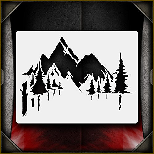 This stencil features a highly detailed mountain range, along with pine trees in the foreground. This makes it easy to put a scenic background into your next project. Perfect for all airbrush experience levels. These will be a valuable aid for beginners to gain useful experience and will help professionals save valuable time. Our stencils are perfect for advanced professionals and beginners, ideal for every use and in high demand among airbrush and tattoo artists, US car and motorcycle customizers, and even leading clothing brands. Everyone can benefit from each of our products and future hot designs in development can significantly shorten the process of becoming an airbrush expert. We provide stencils in top laser quality, with the hottest trending lettering and graphic designs, as well as in the textile and advertising industries. All professional designs are reusable precision laser cut and made out of solvent proof thick mylar material. The clean laser cut edges of this design allow you to create quick, consistent and repeatable highly detailed professional artwork. Unlike our competitors with inferior clip-art and traditional designs, we create only high quality and unique designs that will outlast the others. Suitable for motorcycles, cars, tattoos, cake decorating, t-shirts, arts, and all kinds of DIY projects. From our Nature line of stencils.
