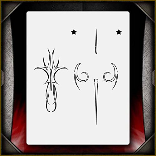 This stencil has a couple of different intricate pinstripe designs, and a star image as well. Perfect for creating a beautiful pinstripe border around your project, and can be used as a background to any element in your work, turning it into an instant eye-catcher. Perfect for all airbrush experience levels. These will be a valuable aid for beginners to gain useful experience and will help professionals save valuable time. Our stencils are perfect for advanced professionals and beginners, ideal for every use and in high demand among airbrush and tattoo artists, US car and motorcycle customizers, and even leading clothing brands. Everyone can benefit from each of our products and future hot designs in development can significantly shorten the process of becoming an airbrush expert. We provide stencils in top laser quality, with the hottest trending lettering and graphic designs, as well as in the textile and advertising industries. All professional designs are reusable precision laser cut and made out of solvent proof thick mylar material. The clean laser cut edges of this design allow you to create quick, consistent and repeatable highly detailed professional artwork. Unlike our competitors with inferior clip-art and traditional designs, we create only high quality and unique designs that will outlast the others. Suitable for motorcycles, cars, tattoos, cake decorating, t-shirts, arts, and all kinds of DIY projects. From our Tribal & Pinstripes line of stencils.