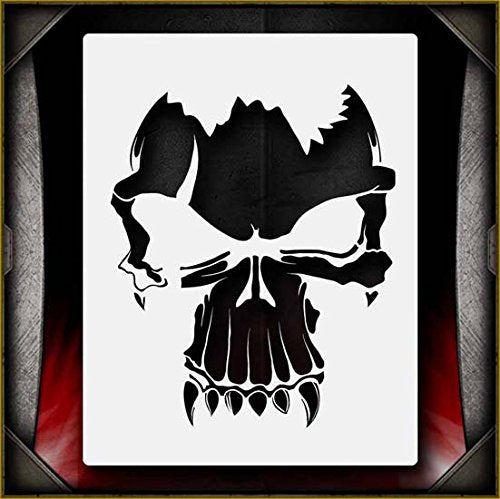 Skulls are one of the most popular items in the airbrush community, and skulls are our specialty here at AirSick! This skull is one of many highly detailed and elaborate skulls that we offer. Whatever type of project you're working on, we have a skull that will fit your needs. Perfect for all airbrush experience levels. These will be a valuable aid for beginners to gain useful experience and will help professionals save valuable time. Our stencils are perfect for advanced professionals and beginners, ideal for every use and in high demand among airbrush and tattoo artists, US car and motorcycle customizers, and even leading clothing brands. Everyone can benefit from each of our products and future hot designs in development can significantly shorten the process of becoming an airbrush expert. We provide stencils in top laser quality, with the hottest trending lettering and graphic designs, as well as in the textile and advertising industries. All professional designs are reusable precision laser cut and made out of solvent proof thick mylar material. The clean laser cut edges of this design allow you to create quick, consistent and repeatable highly detailed professional artwork. Unlike our competitors with inferior clip-art and traditional designs, we create only high quality and unique designs that will outlast the others. Suitable for motorcycles, cars, tattoos, cake decorating, t-shirts, arts, and all kinds of DIY projects. From our Skulls line of airbrush stencils.
