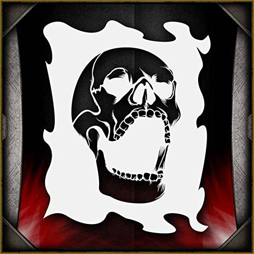 Skulls are one of the most popular items in the airbrush community, and skulls are our specialty here at AirSick! This skull is one of many highly detailed and elaborate skulls that we offer. Whatever type of project you're working on, we have a skull that will fit your needs. Perfect for all airbrush experience levels. These will be a valuable aid for beginners to gain useful experience and will help professionals save valuable time. Our stencils are perfect for advanced professionals and beginners, ideal for every use and in high demand among airbrush and tattoo artists, US car and motorcycle customizers, and even leading clothing brands. Everyone can benefit from each of our products and future hot designs in development can significantly shorten the process of becoming an airbrush expert. We provide stencils in top laser quality, with the hottest trending lettering and graphic designs, as well as in the textile and advertising industries. All professional designs are reusable precision laser cut and made out of solvent proof thick mylar material. The clean laser cut edges of this design allow you to create quick, consistent and repeatable highly detailed professional artwork. Unlike our competitors with inferior clip-art and traditional designs, we create only high quality and unique designs that will outlast the others. Suitable for motorcycles, cars, tattoos, cake decorating, t-shirts, arts, and all kinds of DIY projects. From our Skulls line of airbrush stencils.