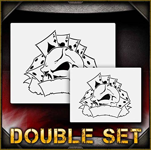 Skulls are one of the most popular images in the airbrush community, and skulls are our specialty here at AirSick! This 2 stencil set features one of our exquisitely detailed skull images in 2 different sizes. Whatever type of project you're working on, we have a skull that will fit your need! Perfect for all airbrush experience levels. These will be a valuable aid for beginners to gain useful experience and will help professionals save valuable time. Our stencils are perfect for advanced professionals and beginners, ideal for every use and in high demand among airbrush and tattoo artists, US car and motorcycle customizers, and even leading clothing brands. Everyone can benefit from each of our products and future hot designs in development can significantly shorten the process of becoming an airbrush expert. We provide stencils in top laser quality, with the hottest trending lettering and graphic designs, as well as in the textile and advertising industries. All professional designs are reusable precision laser cut and made out of solvent proof thick mylar material. The clean laser cut edges of this design allow you to create quick, consistent and repeatable highly detailed professional artwork. Unlike our competitors with inferior clip-art and traditional designs, we create only high quality and unique designs that will outlast the others. Suitable for motorcycles, cars, tattoos, cake decorating, t-shirts, arts, and all kinds of DIY projects. From our B Series line of airbrush stencils.