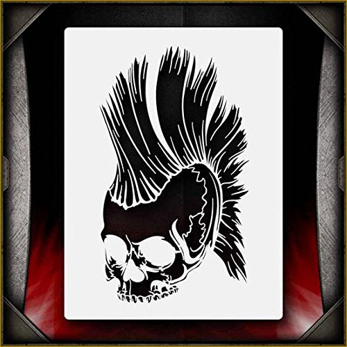 Skulls are one of the most popular items in the airbrush community, and skulls are our specialty here at AirSick! This skull is one of many highly detailed and elaborate skulls that we offer. Whatever type of project you're working on, we have a skull that will fit your needs. Perfect for all airbrush experience levels. These will be a valuable aid for beginners to gain useful experience and will help professionals save valuable time. Our stencils are perfect for advanced professionals and beginners, ideal for every use and in high demand among airbrush and tattoo artists, US car and motorcycle customizers, and even leading clothing brands. Everyone can benefit from each of our products and future hot designs in development can significantly shorten the process of becoming an airbrush expert. We provide stencils in top laser quality, with the hottest trending lettering and graphic designs, as well as in the textile and advertising industries. All professional designs are reusable precision laser cut and made out of solvent proof thick mylar material. The clean laser cut edges of this design allow you to create quick, consistent and repeatable highly detailed professional artwork. Unlike our competitors with inferior clip-art and traditional designs, we create only high quality and unique designs that will outlast the others. Suitable for motorcycles, cars, tattoos, cake decorating, t-shirts, arts, and all kinds of DIY projects. From our Skulls line of airbrush stencils.