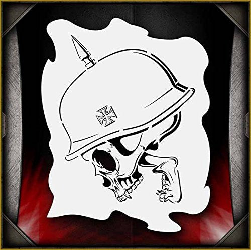 Skulls are one of the most popular items in the airbrush community, and skulls are our specialty here at AirSick! This skull is one of many highly detailed and elaborate skulls that we offer. Whatever type of project you're working on, we have a skull that will fit your needs. Perfect for all airbrush experience levels. These will be a valuable aid for beginners to gain useful experience and will help professionals save valuable time. Our stencils are perfect for advanced professionals and beginners, ideal for every use and in high demand among airbrush and tattoo artists, US car and motorcycle customizers, and even leading clothing brands. Everyone can benefit from each of our products and future hot designs in development can significantly shorten the process of becoming an airbrush expert. We provide stencils in top laser quality, with the hottest trending lettering and graphic designs, as well as in the textile and advertising industries. All professional designs are reusable precision laser cut and made out of solvent proof thick mylar material. The clean laser cut edges of this design allow you to create quick, consistent and repeatable highly detailed professional artwork. Unlike our competitors with inferior clip-art and traditional designs, we create only high quality and unique designs that will outlast the others. Suitable for motorcycles, cars, tattoos, cake decorating, t-shirts, arts, and all kinds of DIY projects. From our Skulls line of airbrush stencils.