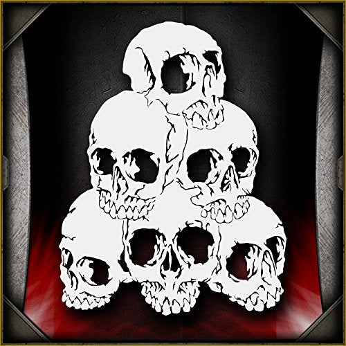 A pile of skulls is a great way to add a dark and sinister feel to your artwork. We here at AirSick know this, so we developed the original skull background stencils. This exquisitely detailed pile of skulls is great to use as a background for your artwork, or to add a pile of skulls anywhere in your project. Perfect for all airbrush experience levels. These will be a valuable aid for beginners to gain useful experience and will help professionals save valuable time. Our stencils are perfect for advanced professionals and beginners, ideal for every use and in high demand among airbrush and tattoo artists, US car and motorcycle customizers, and even leading clothing brands. Everyone can benefit from each of our products and future hot designs in development can significantly shorten the process of becoming an airbrush expert. We provide stencils in top laser quality, with the hottest trending lettering and graphic designs, as well as in the textile and advertising industries. All professional designs are reusable precision laser cut and made out of solvent proof thick mylar material. The clean laser cut edges of this design allow you to create quick, consistent and repeatable highly detailed professional artwork. Unlike our competitors with inferior clip-art and traditional designs, we create only high quality and unique designs that will outlast the others. Suitable for motorcycles, cars, tattoos, cake decorating, t-shirts, arts, and all kinds of DIY projects. From our Skull Background line of airbrush stencils.