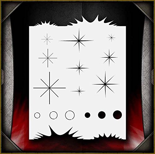 This detailed airbrush stencil features a number of different sparkle designs, as well as several circles. These sparkles are great to give a feeling of light and texture to a dark background. The edges of the stencil are also detailed to aid with masking, drop shadows and shading. Perfect for all airbrush experience levels. These will be a valuable aid for beginners to gain useful experience and will help professionals save valuable time. Our stencils are perfect for advanced professionals and beginners, ideal for every use and in high demand among airbrush and tattoo artists, US car and motorcycle customizers, and even leading clothing brands. Everyone can benefit from each of our products and future hot designs in development can significantly shorten the process of becoming an airbrush expert. We provide stencils in top laser quality, with the hottest trending lettering and graphic designs, as well as in the textile and advertising industries. All professional designs are reusable precision laser cut and made out of solvent proof thick mylar material. The clean laser cut edges of this design allow you to create quick, consistent and repeatable highly detailed professional artwork. Unlike our competitors with inferior clip-art and traditional designs, we create only high quality and unique designs that will outlast the others. Suitable for motorcycles, cars, tattoos, cake decorating, t-shirts, arts, and all kinds of DIY projects. From our Free Hand line of stencils.