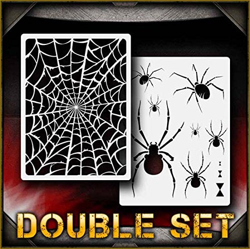 This 2 airbrush stencil set contains one of our highly detailed spider web stencils, along with a stencil with a couple of our spider designs in various sizes. The spider stencil also features an hourglass to turn your spiders into black widows. A great way to quickly add dark and eerie details to your project. Our stencils are perfect for advanced professionals and beginners, ideal for every use and in high demand among airbrush and tattoo artists, US car and motorcycle customizers, and even leading clothing brands. Everyone can benefit from each of our products and future hot designs in development can significantly shorten the process of becoming an airbrush expert. We provide stencils in top laser quality, with the hottest trending lettering and graphic designs, as well as in the textile and advertising industries. All professional designs are reusable precision laser cut and made out of solvent proof thick mylar material. The clean laser cut edges of this design allow you to create quick, consistent and repeatable highly detailed professional artwork. Unlike our competitors with inferior clip-art and traditional designs, we create only high quality and unique designs that will outlast the others. This 2 airbrush stencil set contains one of our highly detailed spider web stencils, along with a stencil with a couple of our spider designs in various sizes. The spider stencil also features an hourglass to turn your spiders into black widows. A great way to quickly add dark and eerie details to your project.