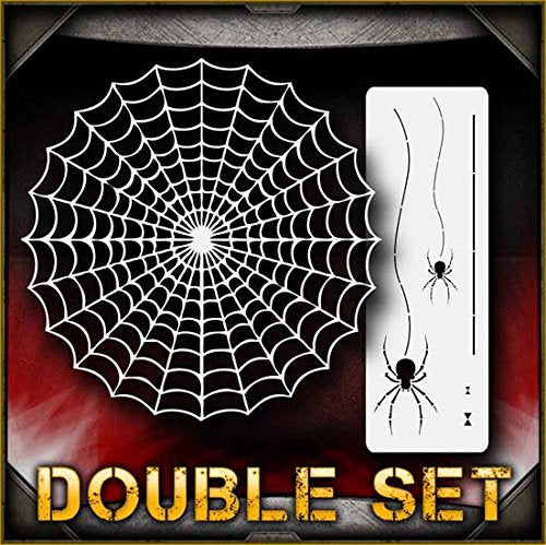 This 2 stencil set contains one of our highly detailed spider web stencils, along with a stencil with a couple of our spider designs in various sizes. The spider stencil also features an hourglass to turn your spiders into black widows. A great way to quickly add dark and eerie details to your project. Our stencils are perfect for advanced professionals and beginners, ideal for every use and in high demand among airbrush and tattoo artists, US car and motorcycle customizers, and even leading clothing brands. Everyone can benefit from each of our products and future hot designs in development can significantly shorten the process of becoming an airbrush expert. We provide stencils in top laser quality, with the hottest trending lettering and graphic designs, as well as in the textile and advertising industries. All professional designs are reusable precision laser cut and made out of solvent proof thick mylar material. The clean laser cut edges of this design allow you to create quick, consistent and repeatable highly detailed professional artwork. Unlike our competitors with inferior clip-art and traditional designs, we create only high quality and unique designs that will outlast the others. This 2 stencil set contains one of our highly detailed spider web stencils, along with a stencil with a couple of our spider designs in various sizes. The spider stencil also features an hourglass to turn your spiders into black widows. A great way to quickly add dark and eerie details to your project.