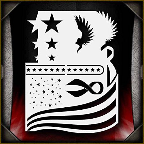 Our Stars and Stripes Multi Composition airbrush stencil features all the imagery you need to let people know you are love the U-S-A! It features wavy stripes, a variety of star patterns, wings, and a ribbon design that can be used to create yellow ribbons, or any color you choose. The edges are detailed to aid with masking, drop shadows and shading. Perfect for all airbrush experience levels. These will be a valuable aid for beginners to gain useful experience and will help professionals save valuable time. Our stencils are perfect for advanced professionals and beginners, ideal for every use and in high demand among airbrush and tattoo artists, US car and motorcycle customizers, and even leading clothing brands. Everyone can benefit from each of our products and future hot designs in development can significantly shorten the process of becoming an airbrush expert. We provide stencils in top laser quality, with the hottest trending lettering and graphic designs, as well as in the textile and advertising industries. All professional designs are reusable precision laser cut and made out of solvent proof thick mylar material. The clean laser cut edges of this design allow you to create quick, consistent and repeatable highly detailed professional artwork. Unlike our competitors with inferior clip-art and traditional designs, we create only high quality and unique designs that will outlast the others. Suitable for motorcycles, cars, tattoos, cake decorating, t-shirts, arts, and all kinds of DIY projects. From our Multi Composition line of stencils.