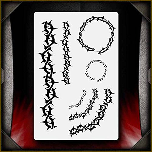 Every rose has its thorns. With this stencil, your roses will have theirs as well. This stencil features our 3 different thorns designs, with multiple sizes of each design featured on the stencil. Perfect for all airbrush experience levels. These will be a valuable aid for beginners to gain useful experience and will help professionals save valuable time. Our stencils are perfect for advanced professionals and beginners, ideal for every use and in high demand among airbrush and tattoo artists, US car and motorcycle customizers, and even leading clothing brands. Everyone can benefit from each of our products and future hot designs in development can significantly shorten the process of becoming an airbrush expert. We provide stencils in top laser quality, with the hottest trending lettering and graphic designs, as well as in the textile and advertising industries. All professional designs are reusable precision laser cut and made out of solvent proof thick mylar material. The clean laser cut edges of this design allow you to create quick, consistent and repeatable highly detailed professional artwork. Unlike our competitors with inferior clip-art and traditional designs, we create only high quality and unique designs that will outlast the others. Suitable for motorcycles, cars, tattoos, cake decorating, t-shirts, arts, and all kinds of DIY projects. From our Nature line of airbrush stencils.