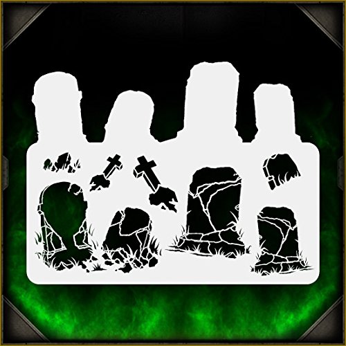 This highly detailed airbrush stencil features our tombstone designs. The stencil contains over half a dozen tombstone shapes, with more shapes along the detailed edge to aid with masking, drop shadows and shading. A must-have for any graveyard project! Perfect for all airbrush experience levels. These will be a valuable aid for beginners to gain useful experience and will help professionals save valuable time. Our stencils are perfect for advanced professionals and beginners, ideal for every use and in high demand among airbrush and tattoo artists, US car and motorcycle customizers, and even leading clothing brands. Everyone can benefit from each of our products and future hot designs in development can significantly shorten the process of becoming an airbrush expert. We provide stencils in top laser quality, with the hottest trending lettering and graphic designs, as well as in the textile and advertising industries. All professional designs are reusable precision laser cut and made out of solvent proof thick mylar material. The clean laser cut edges of this design allow you to create quick, consistent and repeatable highly detailed professional artwork. Unlike our competitors with inferior clip-art and traditional designs, we create only high quality and unique designs that will outlast the others. Suitable for motorcycles, cars, tattoos, cake decorating, t-shirts, arts, and all kinds of DIY projects. From our Zombies line of stencils.