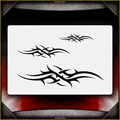 This detailed stencil features one of our many tribal designs, with multiple sizes of the design available on the stencil. A great way to add an overall tribal feel to a project, or for adding pinstripe like details anywhere in your art. Perfect for all airbrush experience levels. These will be a valuable aid for beginners to gain useful experience and will help professionals save valuable time. Our stencils are perfect for advanced professionals and beginners, ideal for every use and in high demand among airbrush and tattoo artists, US car and motorcycle customizers, and even leading clothing brands. Everyone can benefit from each of our products and future hot designs in development can significantly shorten the process of becoming an airbrush expert. We provide stencils in top laser quality, with the hottest trending lettering and graphic designs, as well as in the textile and advertising industries. All professional designs are reusable precision laser cut and made out of solvent proof thick mylar material. The clean laser cut edges of this design allow you to create quick, consistent and repeatable highly detailed professional artwork. Unlike our competitors with inferior clip-art and traditional designs, we create only high quality and unique designs that will outlast the others. Suitable for motorcycles, cars, tattoos, cake decorating, t-shirts, arts, and all kinds of DIY projects. From our Tribal & Pinstripes line of airbrush stencils.