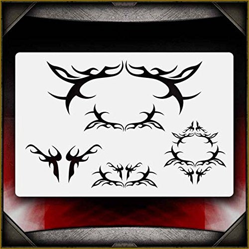 This exquisitely detailed stencil features 2 of our elaborate tribal designs, with multiple sizes of each design featured on the stencil. A great way to add an overall tribal feel to a project, or for adding pinstripe-like details anywhere in your art. Perfect for all airbrush experience levels. These will be a valuable aid for beginners to gain useful experience and will help professionals save valuable time. Our stencils are perfect for advanced professionals and beginners, ideal for every use and in high demand among airbrush and tattoo artists, US car and motorcycle customizers, and even leading clothing brands. Everyone can benefit from each of our products and future hot designs in development can significantly shorten the process of becoming an airbrush expert. We provide stencils in top laser quality, with the hottest trending lettering and graphic designs, as well as in the textile and advertising industries. All professional designs are reusable precision laser cut and made out of solvent proof thick mylar material. The clean laser cut edges of this design allow you to create quick, consistent and repeatable highly detailed professional artwork. Unlike our competitors with inferior clip-art and traditional designs, we create only high quality and unique designs that will outlast the others. Suitable for motorcycles, cars, tattoos, cake decorating, t-shirts, arts, and all kinds of DIY projects. From our Tribal & Pinstripes line of airbrush stencils.