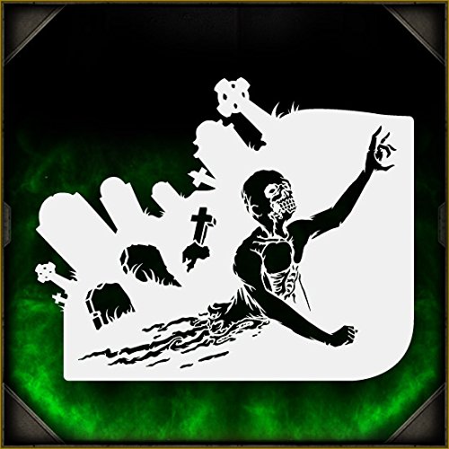 Another terrifying stencil. Perfect for all airbrush experience levels. These will be a valuable aid for beginners to gain useful experience and will help professionals save valuable time. Our stencils are. Perfect for advanced professionals and beginners, ideal for every use and in high demand among airbrush and tattoo artists, US car and motorcycle customizers, and even leading clothing brands. Everyone can benefit from each of our products and future hot designs in development can significantly shorten the process of becoming an airbrush expert. We provide stencils in top laser quality, with the hottest trending lettering and graphic designs, as well as in the textile and advertising industries. All professional designs are reusable precision laser cut and made out of solvent proof thick mylar material. The clean laser cut edges of this design allow you to create quick, consistent and repeatable highly detailed professional artwork. Unlike our competitors with inferior clip-art and traditional designs, we create only high quality and unique designs that will outlast the others. Suitable for motorcycles, cars, tattoos, cake decorating, t-shirts, arts, and all kinds of DIY projects. From our Zombies line of airbrush stencils.