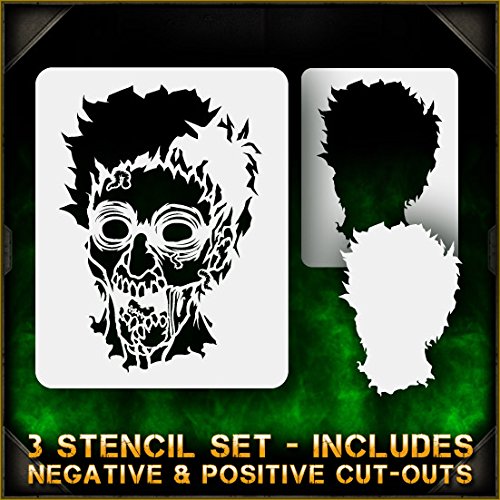 Another terrifying stencil. Perfect for all airbrush experience levels. These will be a valuable aid for beginners to gain useful experience and will help professionals save valuable time. Our stencils are. Perfect for advanced professionals and beginners, ideal for every use and in high demand among airbrush and tattoo artists, US car and motorcycle customizers, and even leading clothing brands. Everyone can benefit from each of our products and future hot designs in development can significantly shorten the process of becoming an airbrush expert. We provide stencils in top laser quality, with the hottest trending lettering and graphic designs, as well as in the textile and advertising industries. All professional designs are reusable precision laser cut and made out of solvent proof thick mylar material. The clean laser cut edges of this design allow you to create quick, consistent and repeatable highly detailed professional artwork. Unlike our competitors with inferior clip-art and traditional designs, we create only high quality and unique designs that will outlast the others. Suitable for motorcycles, cars, tattoos, cake decorating, t-shirts, arts, and all kinds of DIY projects. From our Zombies line of stencils.
