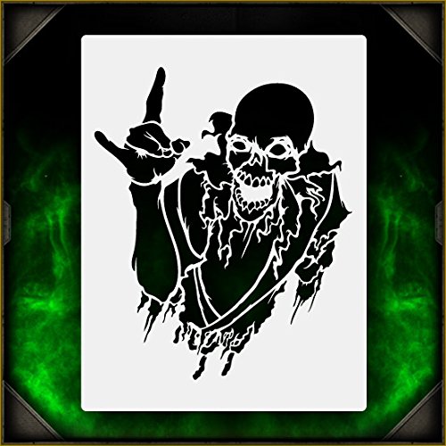 Another terrifying airbrush stencil. Perfect for all airbrush experience levels. These will be a valuable aid for beginners to gain useful experience and will help professionals save valuable time. Our stencils are. Perfect for advanced professionals and beginners, ideal for every use and in high demand among airbrush and tattoo artists, US car and motorcycle customizers, and even leading clothing brands. Everyone can benefit from each of our products and future hot designs in development can significantly shorten the process of becoming an airbrush expert. We provide stencils in top laser quality, with the hottest trending lettering and graphic designs, as well as in the textile and advertising industries. All professional designs are reusable precision laser cut and made out of solvent proof thick mylar material. The clean laser cut edges of this design allow you to create quick, consistent and repeatable highly detailed professional artwork. Unlike our competitors with inferior clip-art and traditional designs, we create only high quality and unique designs that will outlast the others. Suitable for motorcycles, cars, tattoos, cake decorating, t-shirts, arts, and all kinds of DIY projects. From our Zombies line of stencils.